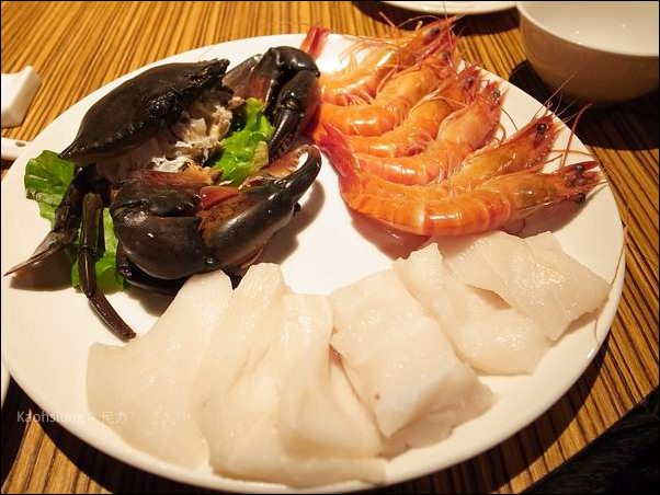 青蟹、魚片、蝦子等新鮮的海鮮食材