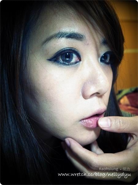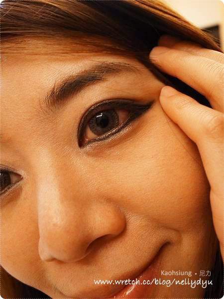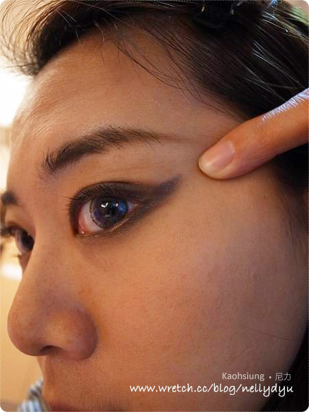 尼力化眼線的手法就是把眼尾用手指頭後端往上拉提