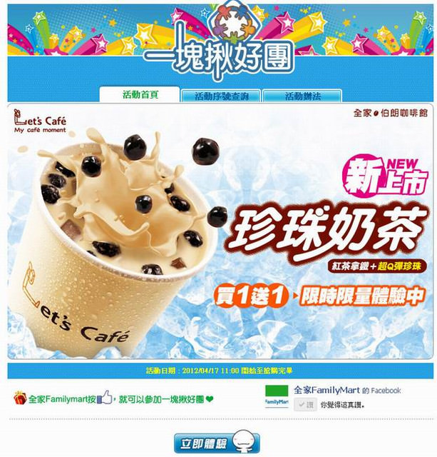 在點選立即體驗之前,記得先給全家Facebook一個讚