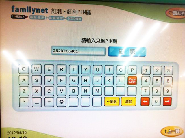 到全家使用FamiPort,輸入紅利PIN碼