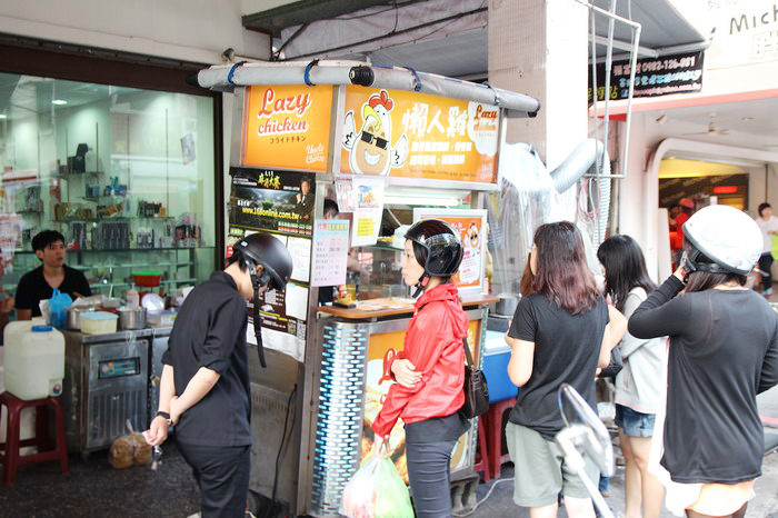 懶人雞才剛營業沒幾個小時,就一堆人在排隊了!而且大家都是頂著大熱天ㄟ,多半都是賣脆皮雞排