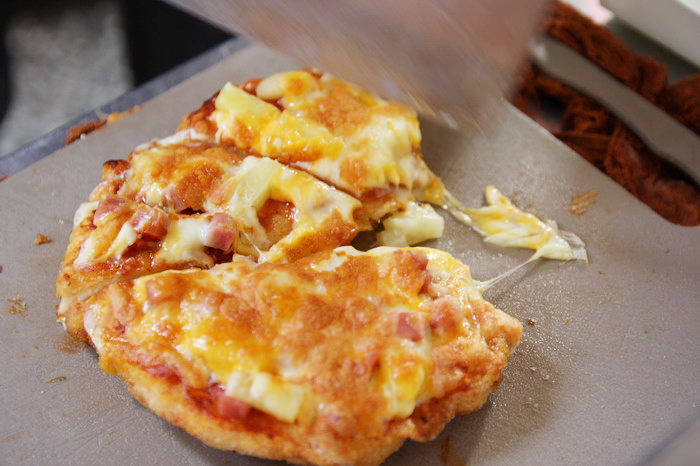 夏威夷口味吃起來蠻爽口的,主要有鳳梨的酸v果香可以調和,加上烤過,油脂顯得不油膩!