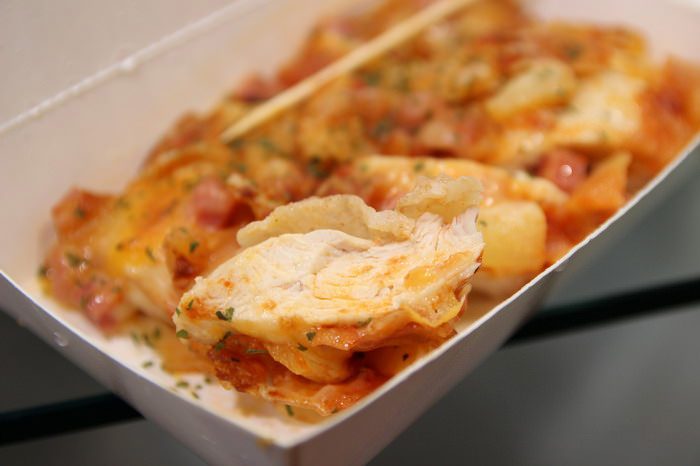旁邊也是懶人雞攤位,賣的是起司馬鈴薯,馬鈴薯口味我幾乎都吃過了
