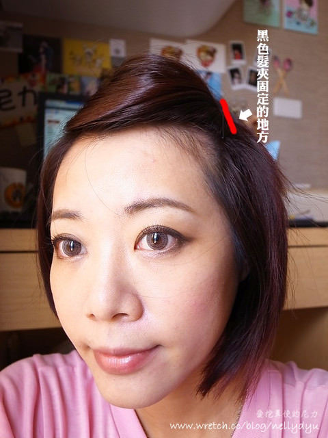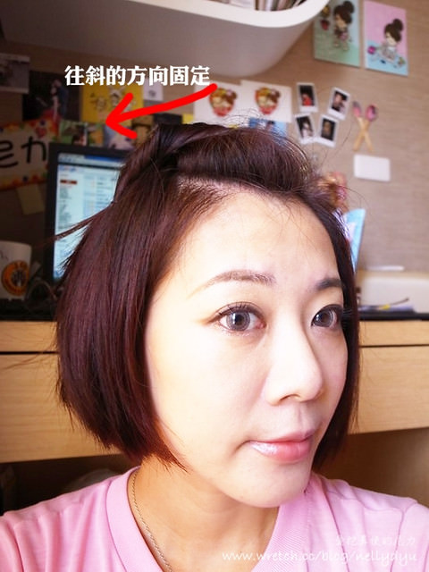 與瀏海呈現反方向,頭髮太短的可以利用髮夾固定