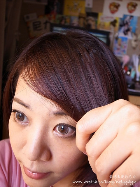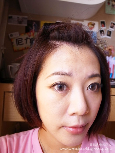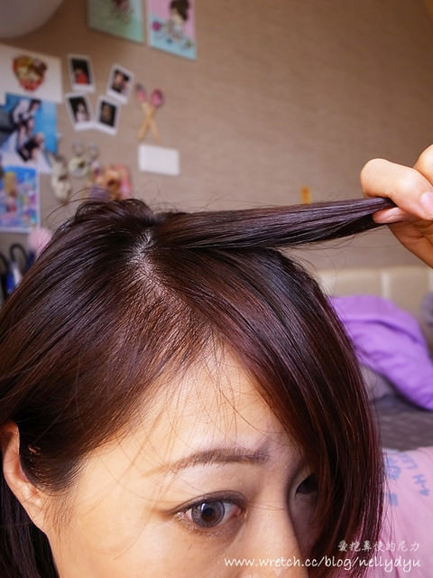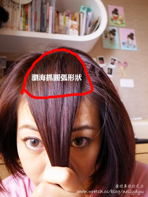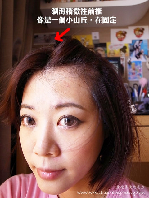 不需要將頭髮捲起來,只要稍微的將瀏海往後