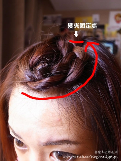 這方式我很喜歡,完全都不需要髮夾阿!!