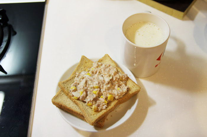 早餐吃鮪魚好開心~~~~美乃滋最好吃了:)(雖然美乃滋很邪惡 哈哈)