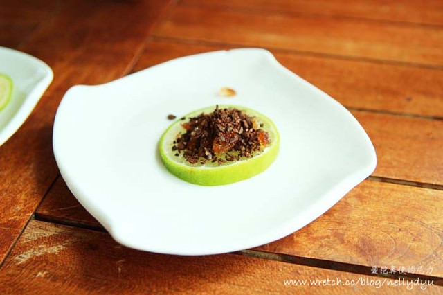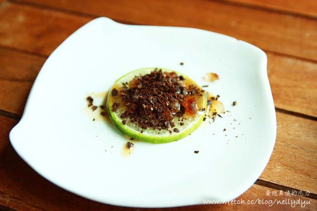 老闆滿面笑容,悄悄的拿出經典招牌來招待我們,啥!!!要我們吃檸檬片,老闆在耍我們嗎?!