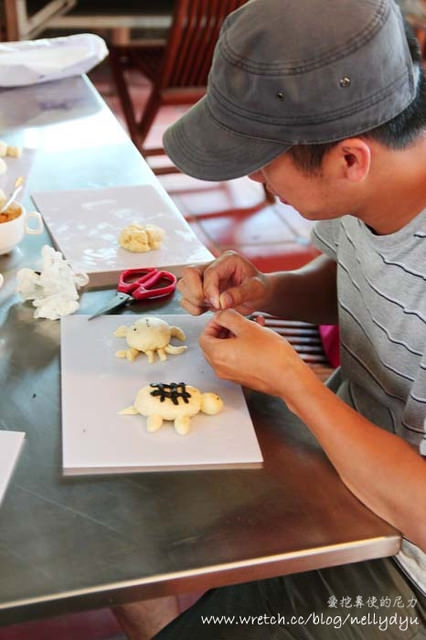 老闆先親自示範如何包內餡跟麵包創意製作,沒有想法的朋友可以參考老闆製作的圖案唷!!