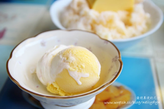 店家自己製作的芒果冰淇淋,芒果香氣很清香,還不到濃厚地步,吃完嘴裡會有芒果酸v香氣