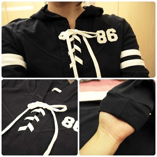 甜心風格帶一點運動休閒風格,此款質地比較厚,很適合現在晚上帶點涼意的氣候穿
