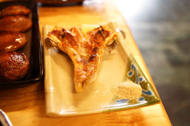 雞翅表皮烤得酥酥脆脆,灑上椒鹽再烤過,讓表皮沾有椒鹽香氣,裡面的肉質保有雞肉水份