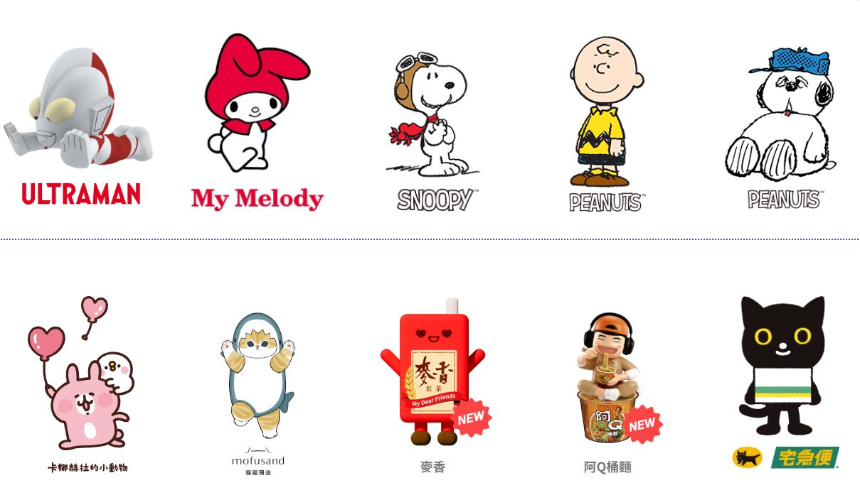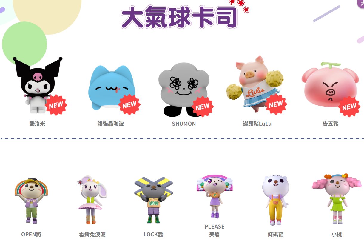 這次還有告五人(吿五豬)、罐頭豬LuLu、酷洛米、貓貓蟲咖波、SHUMON等新登場IP