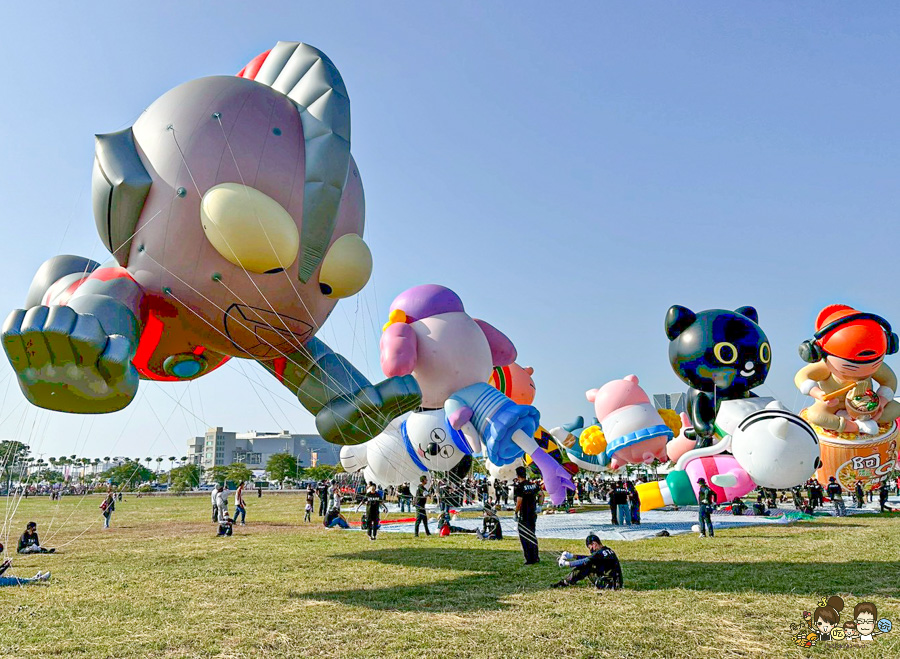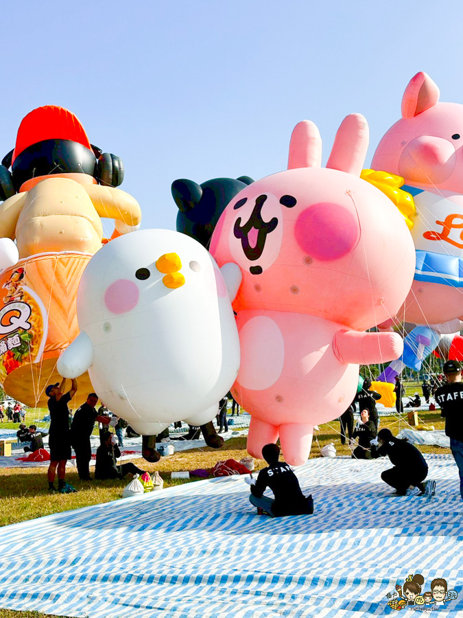 氣球在一開始都會在旁邊空地停歇,很多民眾就會趁這個時候拍照,今年大約有30組大型氣球