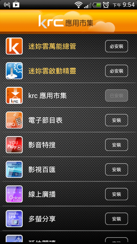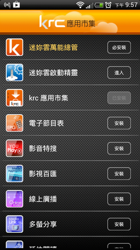 直接使用智慧型手機下載Krc應用市集,必須接著安裝迷妳雲萬能總管、迷妳雲啟動精靈