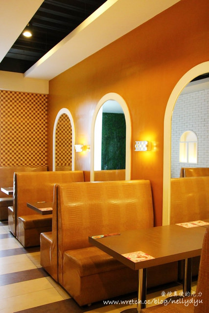 採用皮革般的沙發座椅,蠻好坐的!吃到後面就會變得好慵懶,想睡覺~哈!很放鬆舒適的地方