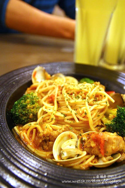 份量還蠻多的,我們選擇的是番茄口味,有蛤蠣、雞肉,還有滿滿的番茄醬
