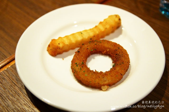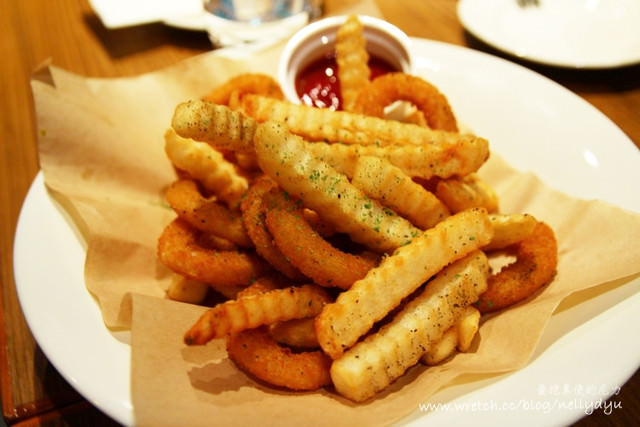 就很一般的冷凍薯條、洋蔥圈,熱熱的吃還不錯~薯條稍嫌沒味道,上面有灑一點香料粉