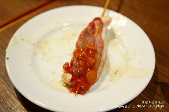 稍微搭配一點類似莎莎醬,會提昇香氣,不過還是缺少雞肉本身該有的甜度及培根該有的鹹度
