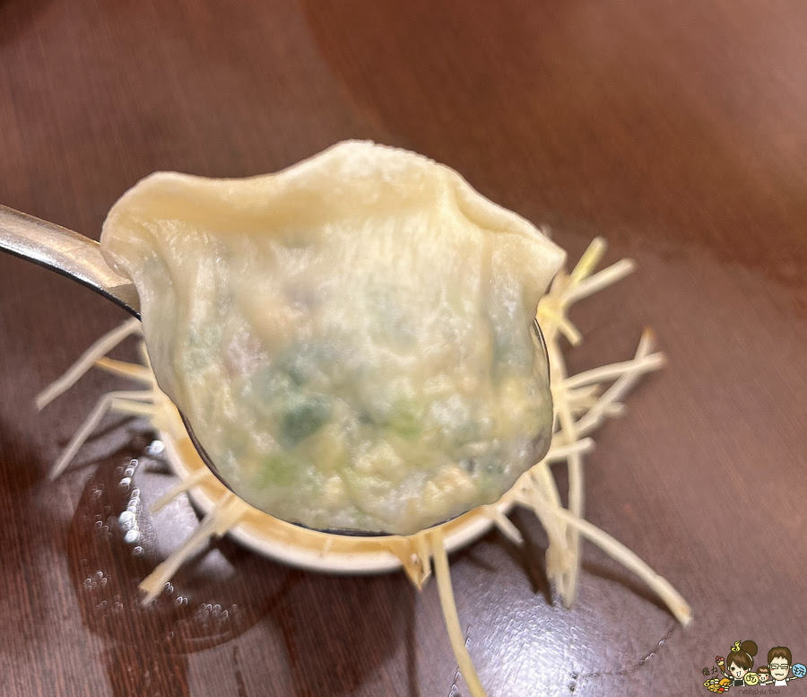 光是麵皮看起來就不單純,白皙的外皮,吃起來一點黏度彈性,麵皮口感又Q又彈