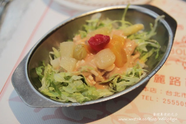 沙拉的部份搭配千島醬,冰鎮過的生菜很爽口,裡面還有一些水果