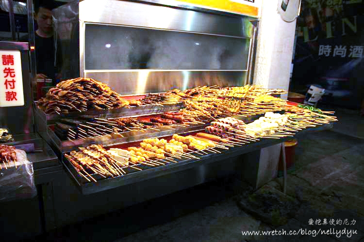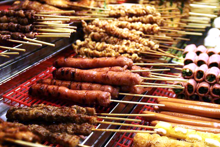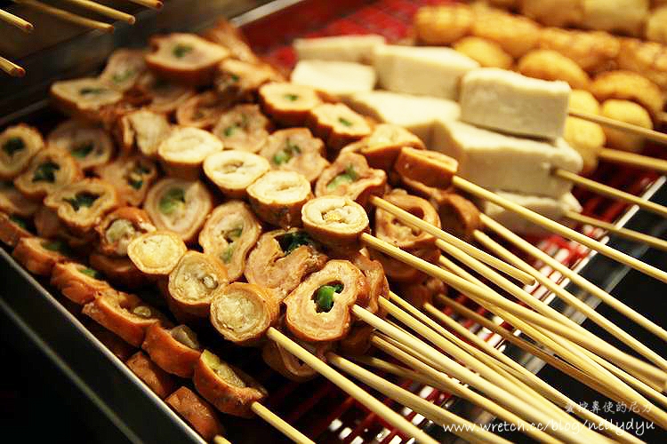 香腸、肥腸、烤雞腿、烤豆腐、雞屁股、米血、羊肉、牛肉