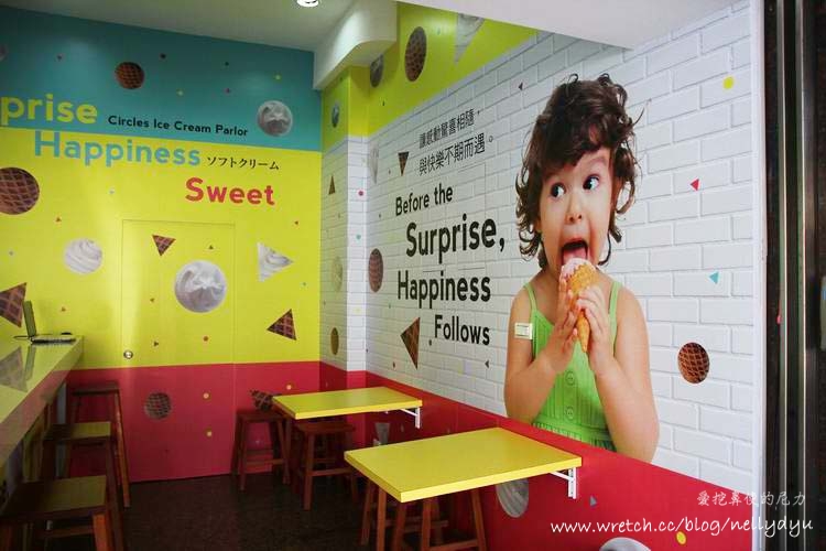 小圈圈霜淇淋店面佈置的很清新,顏色都很繽紛,很夏天很有活力