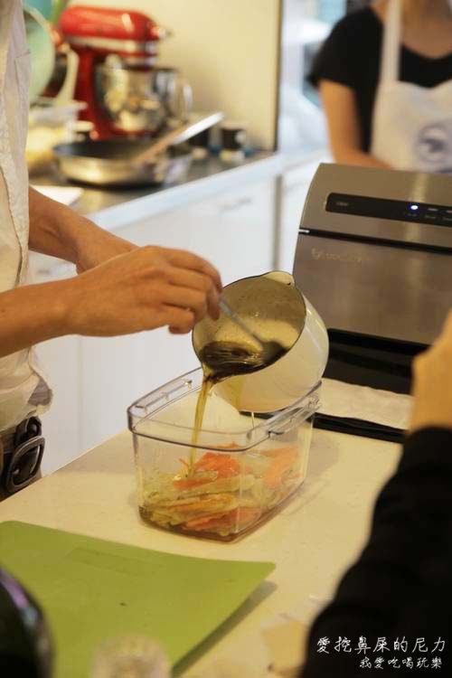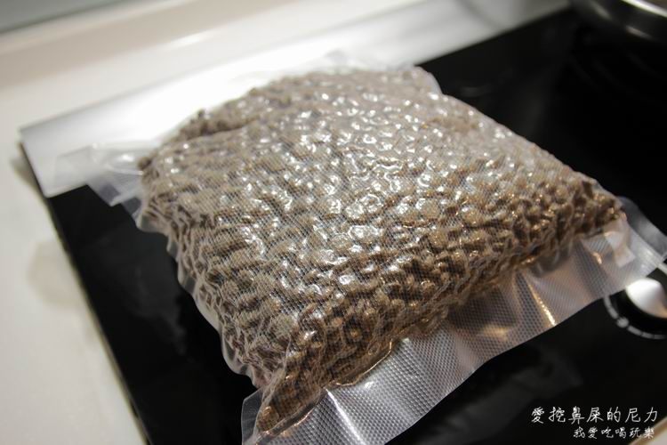 使用FoodSaver將真空河內的空氣抽離,讓食材也會快速入味