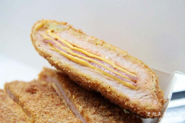 日式四兩藍帶炸豬排採用三層乾乳酪、兩層日式火腿一層一層堆疊
