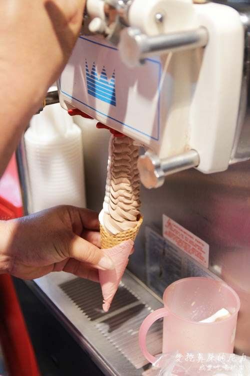 看到霜淇淋招牌,有好幾種口味可以選擇的霜淇淋,還有馬桶冰(可愛)