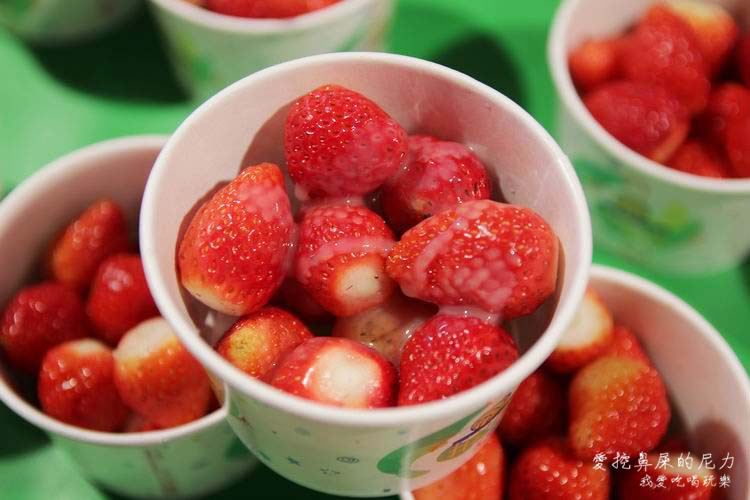 煉乳甜度搭配草莓的酸v,飽滿的草莓水份,新鮮好吃