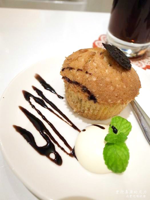 店家自己製作的手工蛋糕,出餐前有烘烤過,能吃到微熱的口感