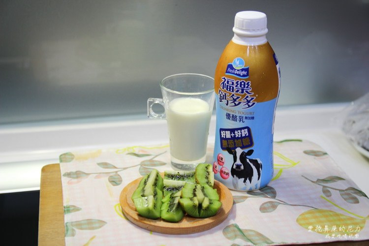 現在每天我都會自己打果汁搭配福樂鈣多多優酪乳,奇異果、鳳梨、芒果都還蠻適合的