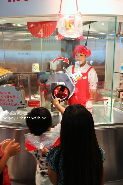 首先消毒手,接著再旁邊的販賣機自己購買泡麵杯子