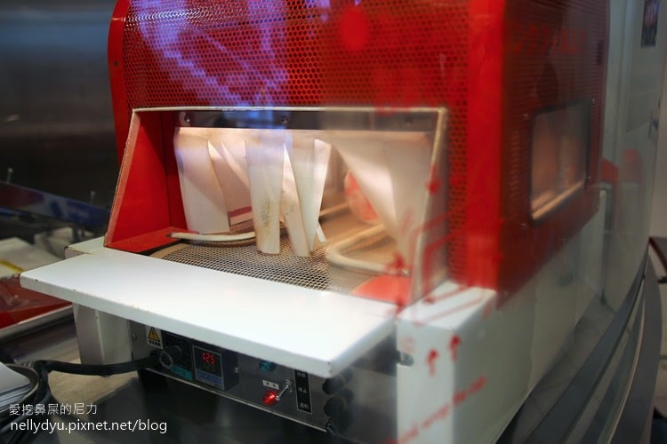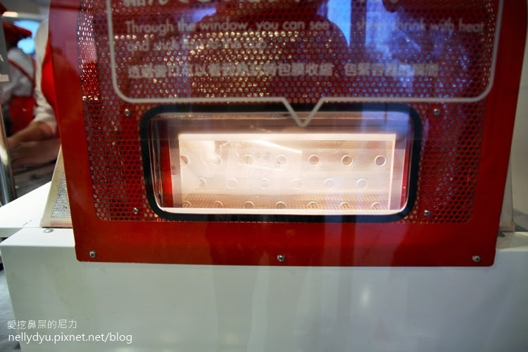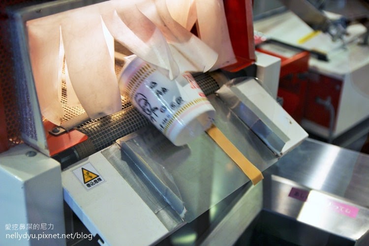 經過熱壓機,塑膠袋就會縮緊,把泡麵完好的封存