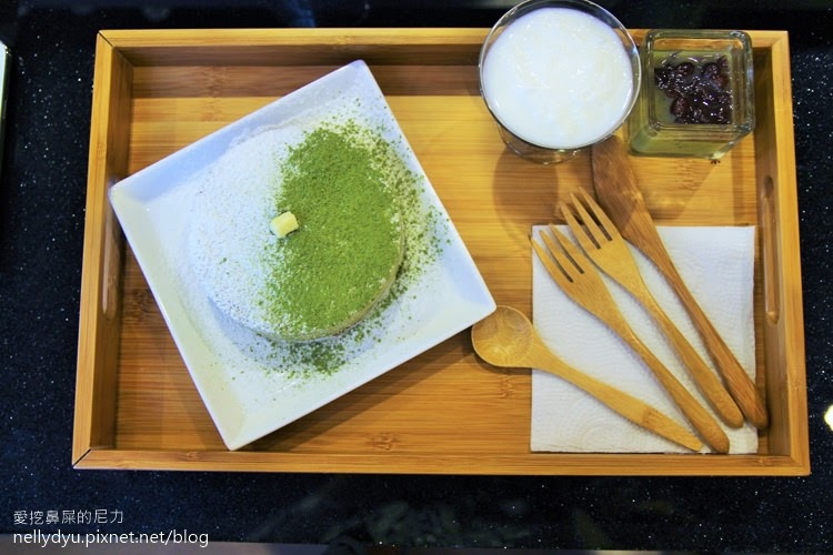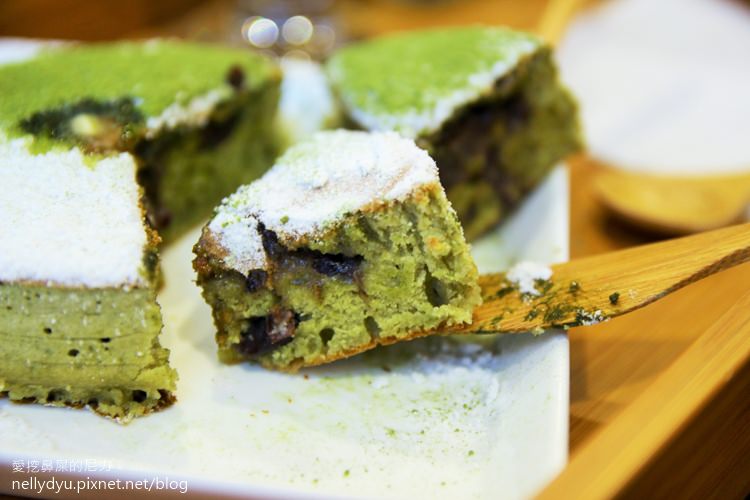 我個人比較愛抹茶粉的區塊,帶有茶香味道,讓厚鬆餅不會太甜膩