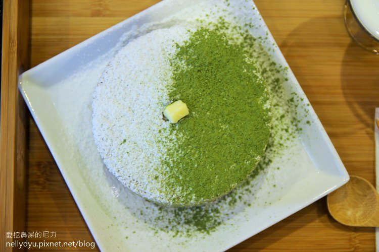 京都宇治金時厚鬆餅一半為抹搽粉,一半為糖粉