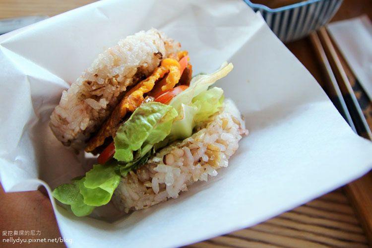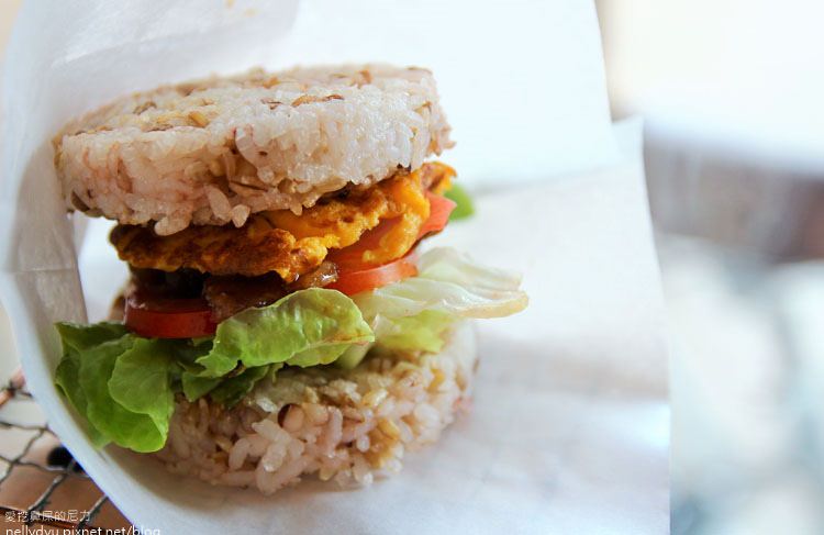薑汁豚肉米漢堡,漢堡採用的是雜糧米