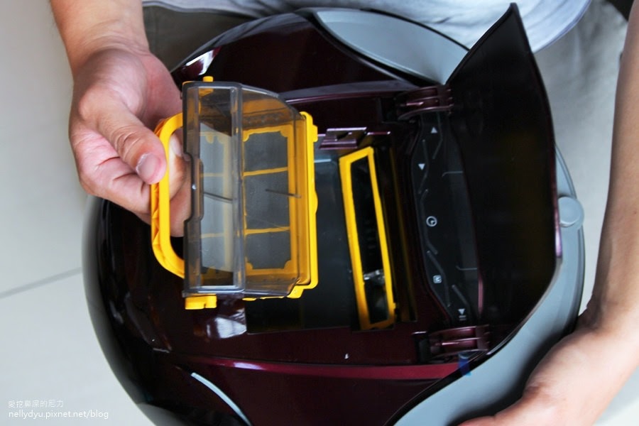好拆取的塵盒,打開後將提手往上提,就可以輕鬆取出