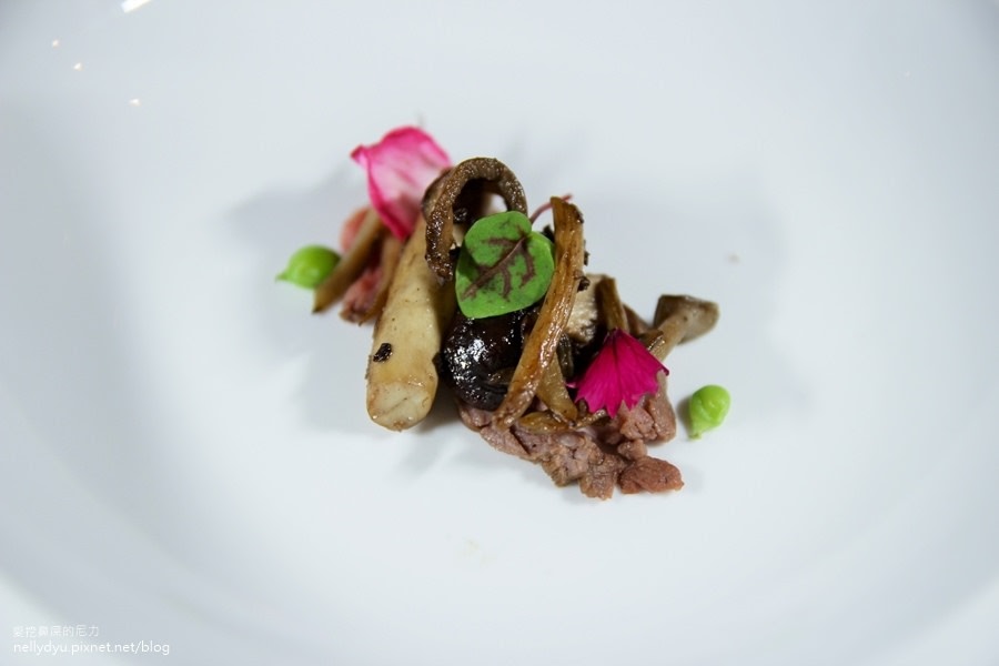 野菇搭配牛肉片,處理過的野菇帶有香氣