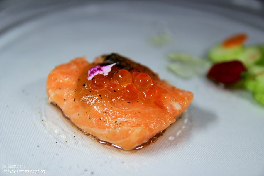 帶有分子料理特色的核桃木煙燻油封鮭魚,也是我每次來我超愛的餐點