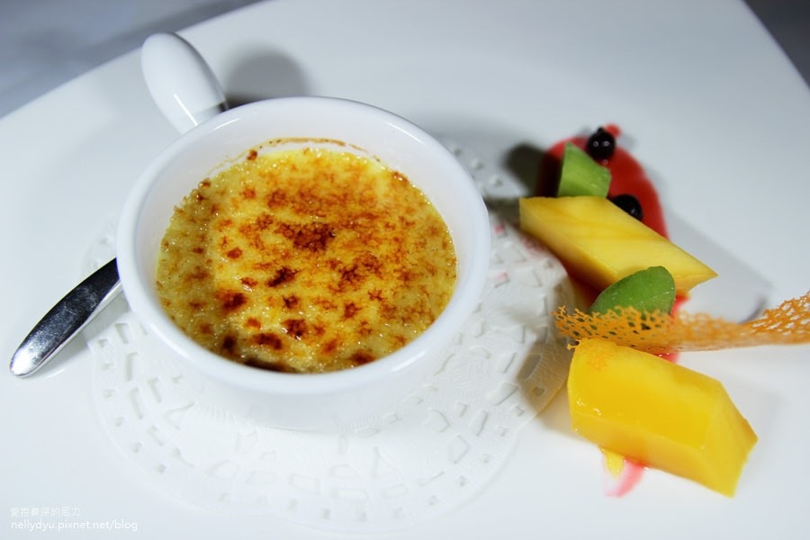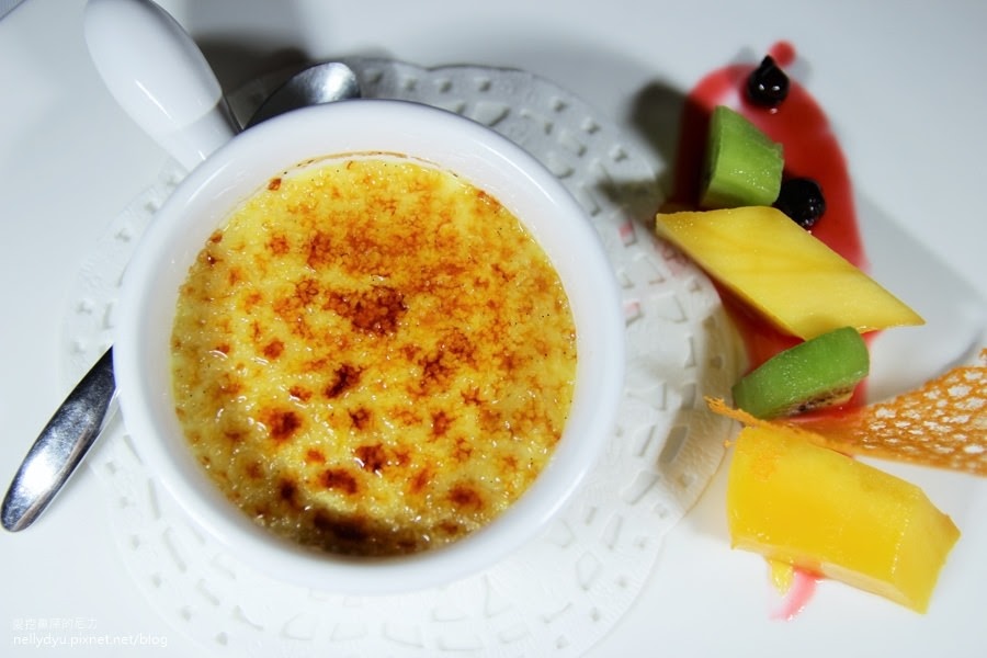 會讓男生女生都愛的烤布蕾,旁邊還有降低甜膩度的微酸水果