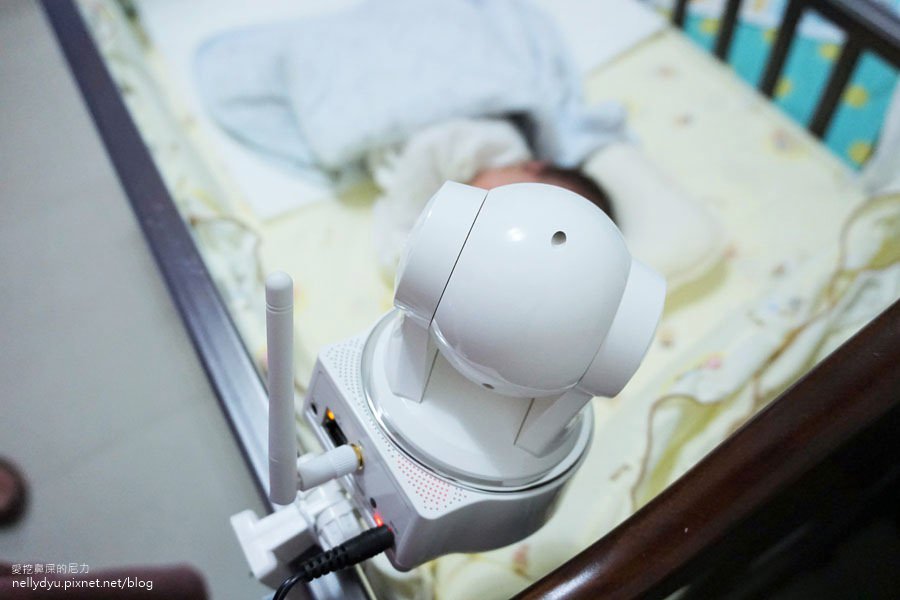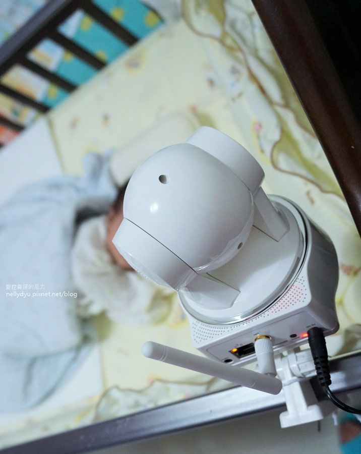我們把它架設在小泥巴的嬰兒床,等在大一點可以在隨時更換位置
