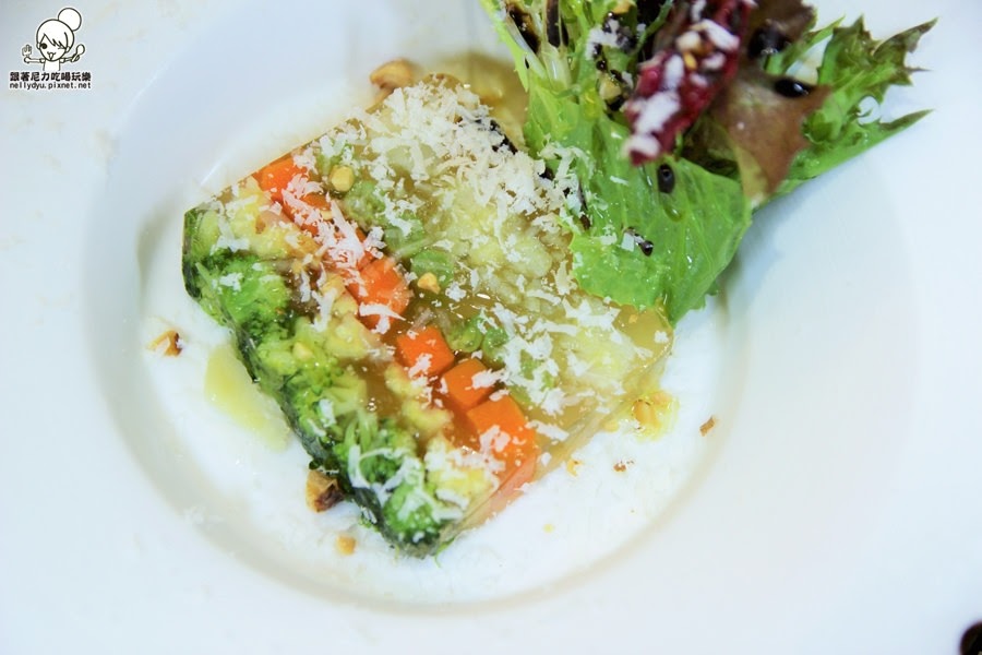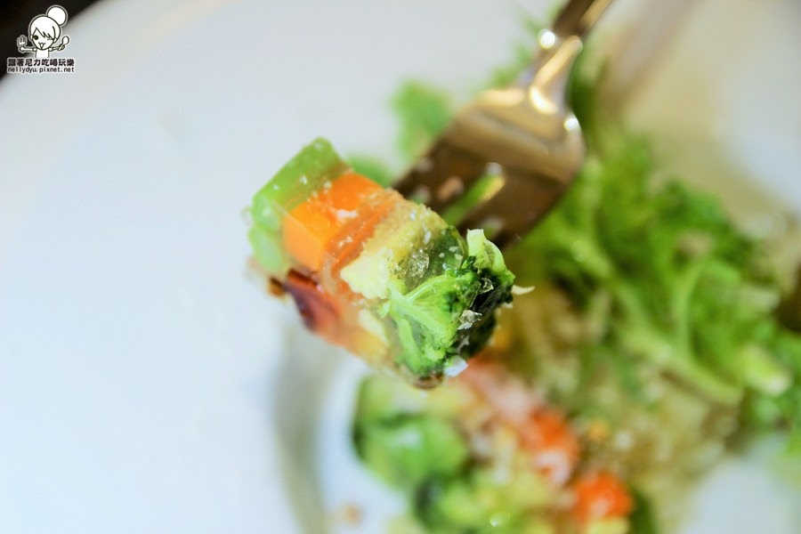 採用新鮮蔬果製作出低熱量的蔬菜凍,屬於冷盤~