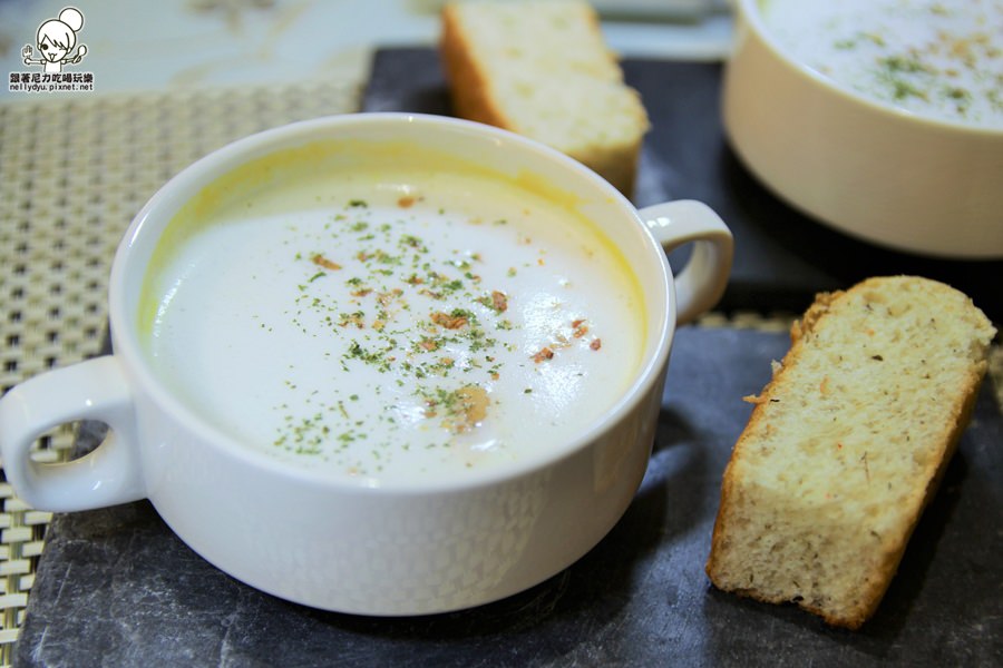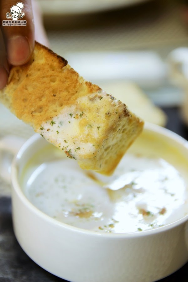 搭配手工麵包,帶有迷迭香味,單吃或者沾湯享用都OK~