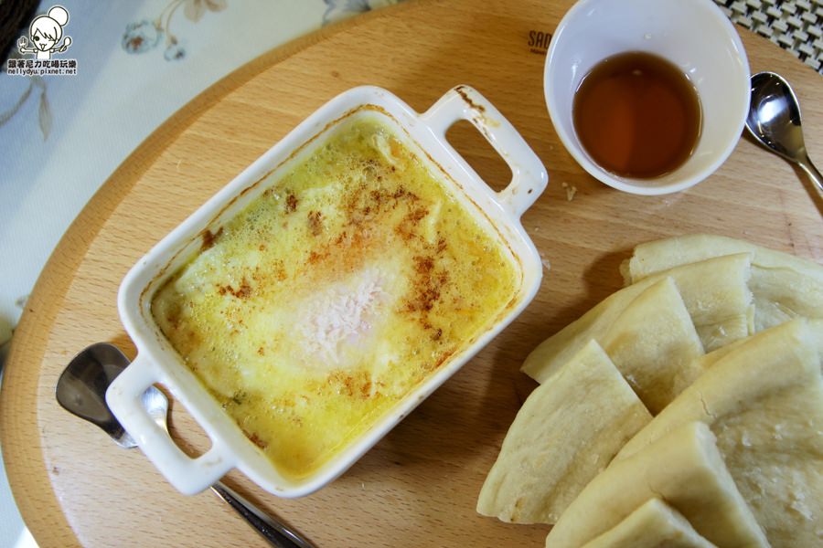 搭配蜂蜜變成甜的,味道也很讚~很推薦這款四種起司烘蛋附自製餅皮