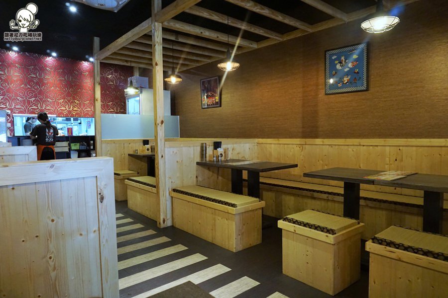 採用木製裝潢佈置,椅子上帶有塌塌米的墊子