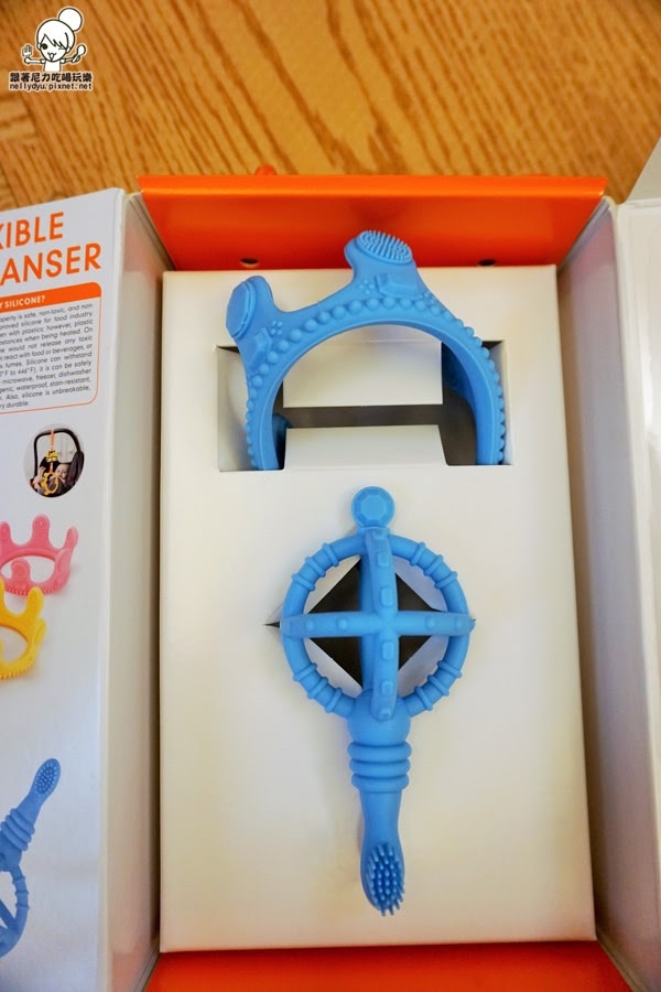 質地很柔軟,採用矽膠製作,給小泥巴使用前我都會事先消毒過,在讓他咬合玩耍