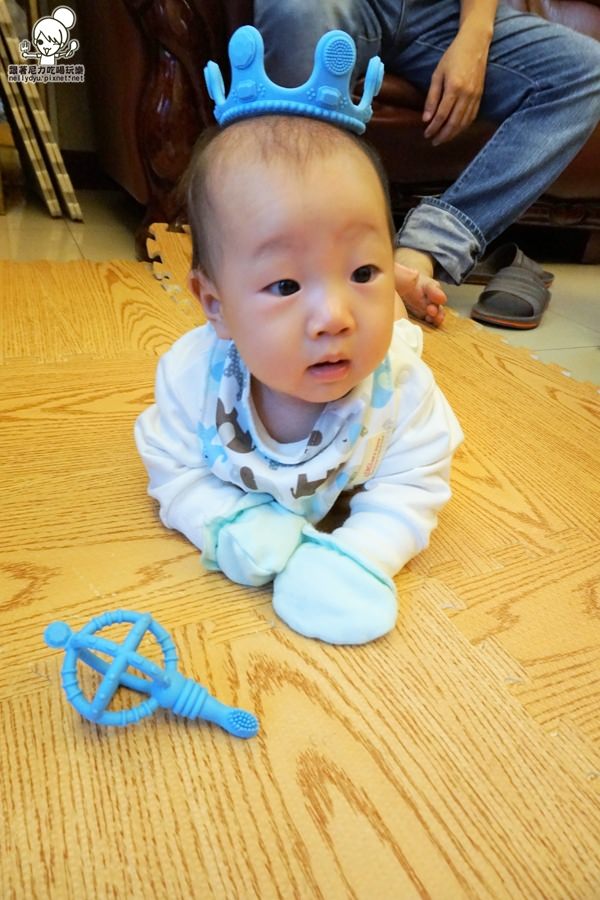 皇冠還可以當配件穿戴拍照,寶寶還可以抓著訓練手力