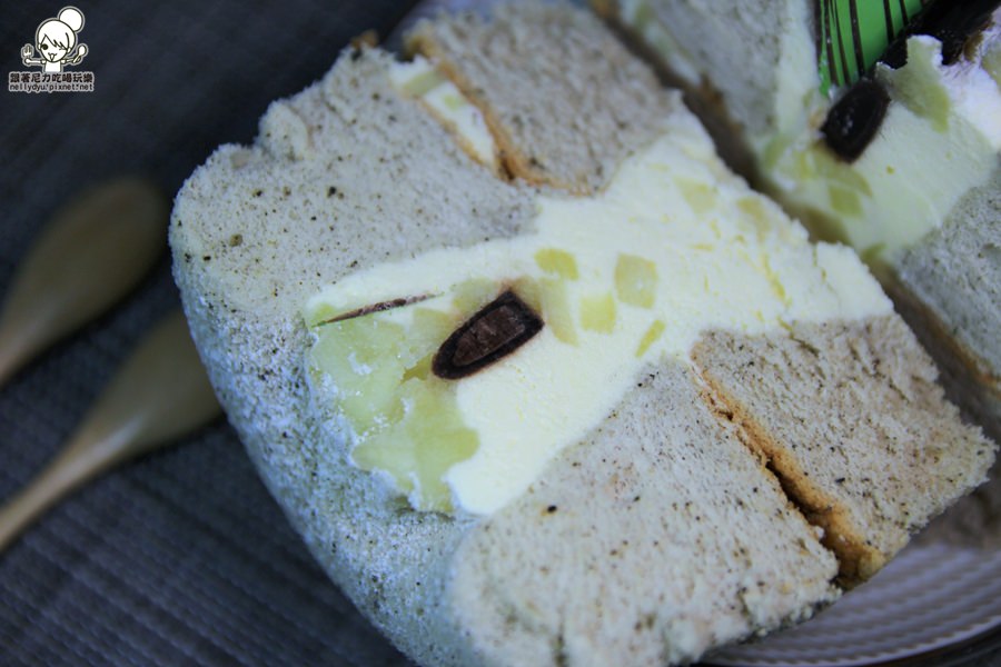 蛋糕還可以看到黑黑顆粒,也就是基底的伯爵茶,吃之前可以先聞一下